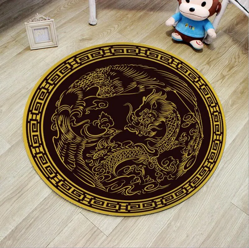 .Images for 60/80cm Round Carpets Dragon and Phoenix Print Carpet Anti-slip Rugs Twin Bliss Mat Home Decor Floor Mat for Living Room