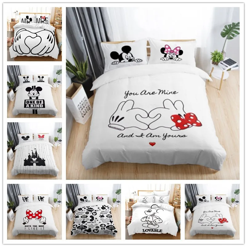 Related Product for home and 3pcs Black White Bedding Set Mickey Minnie Duvet Cover Home Textile Couple Wedding Quilt Set Adult King Size Bedding Set